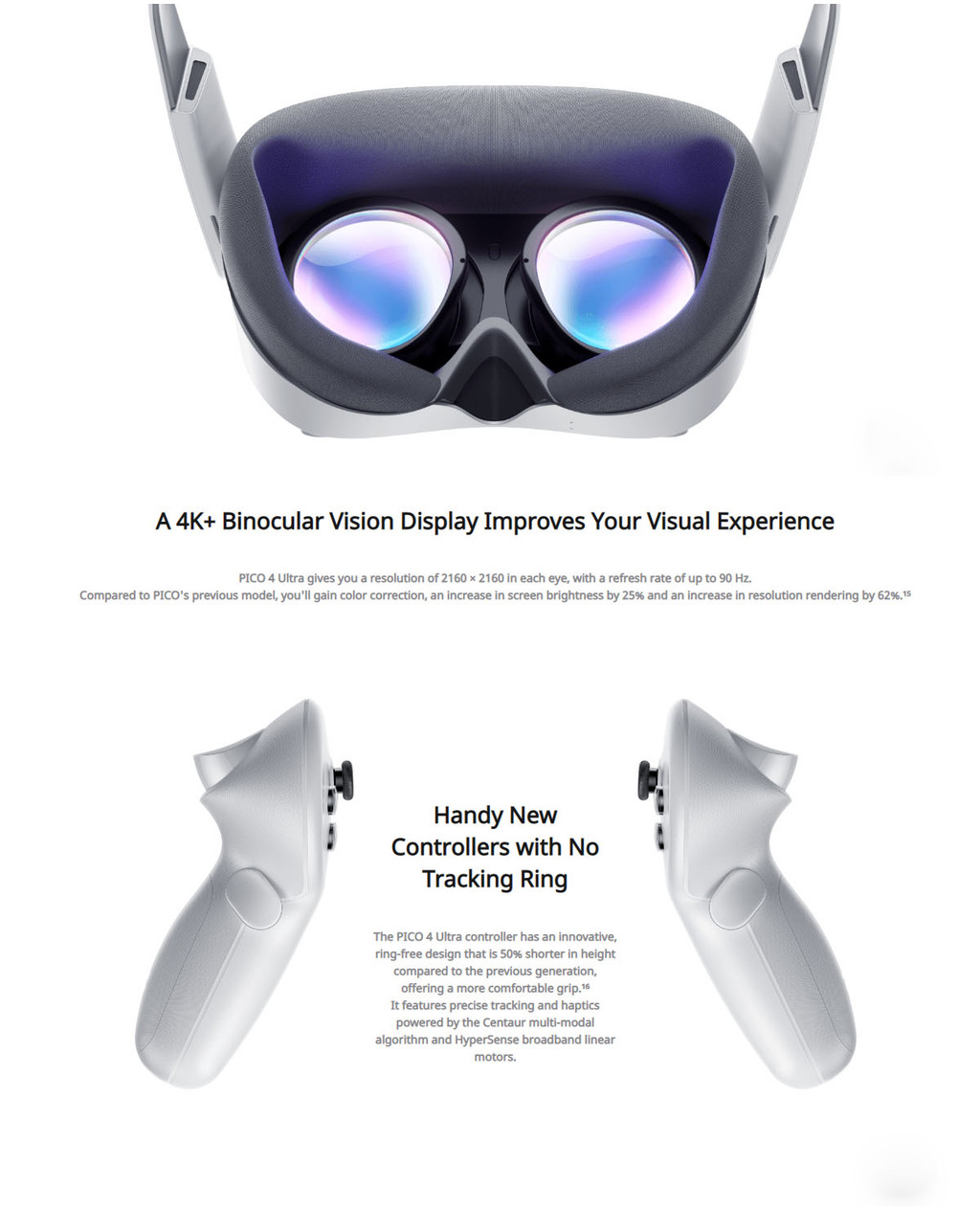 1 x PICO 4 Ultra , 2 x Controller , 2 x Wrist strap , 1 x Glasses Spacer , 1 x Face foam , 4 x 1.5V AA alkaline battery , 1 x USB-C to USB-C cable , 1 x Quick Guide