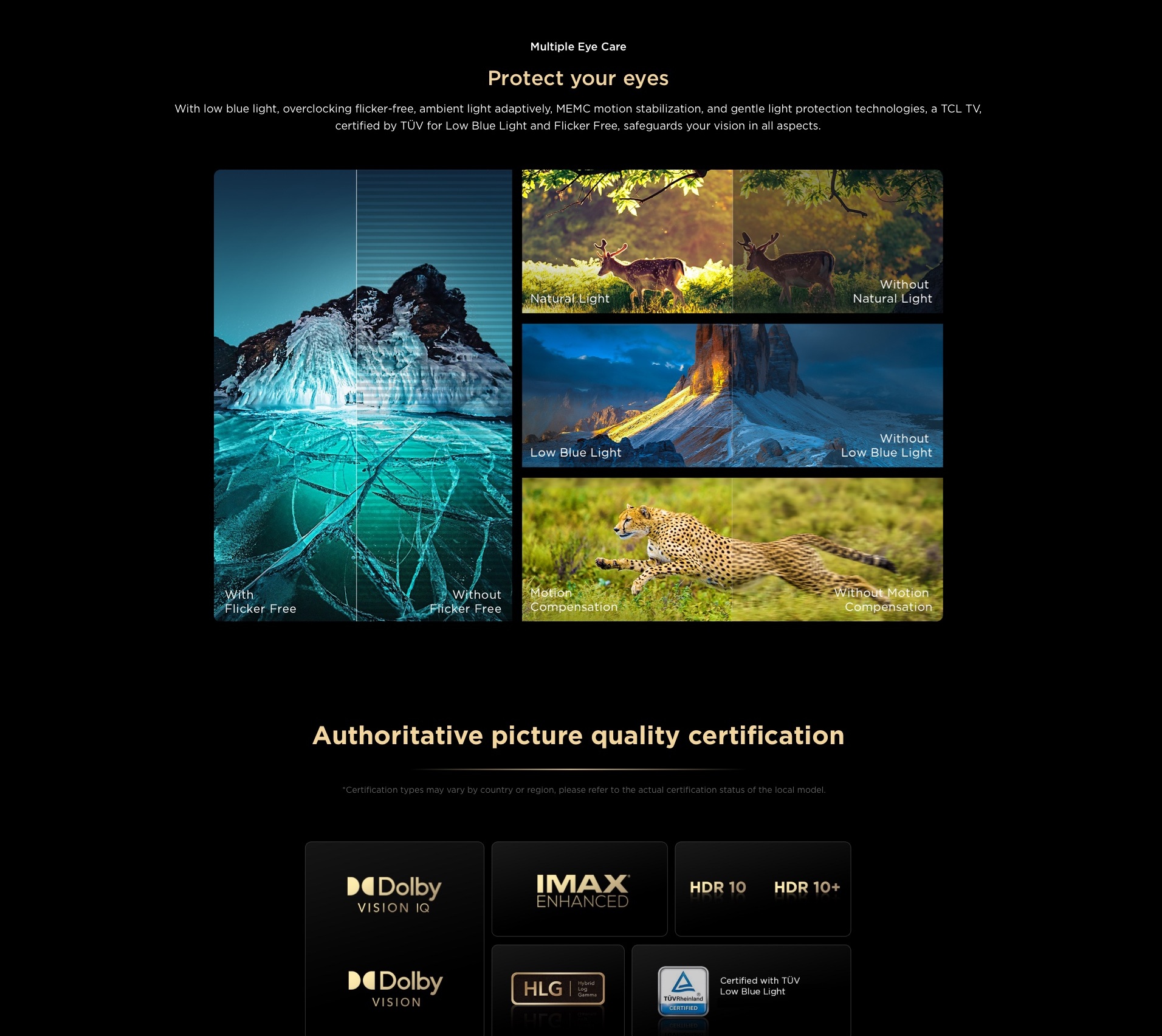 · HDR 3000 nits (85″ 75″); 2600 nits (65″)